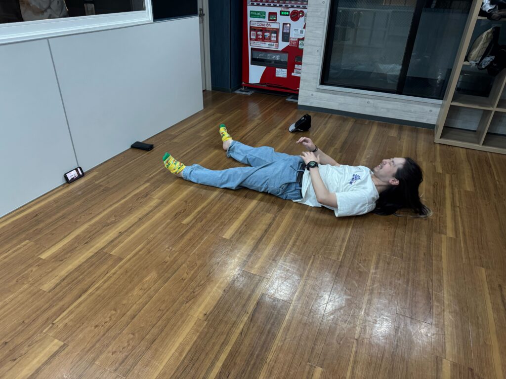 ①踊れる服装(Tシャツやスウェット等)