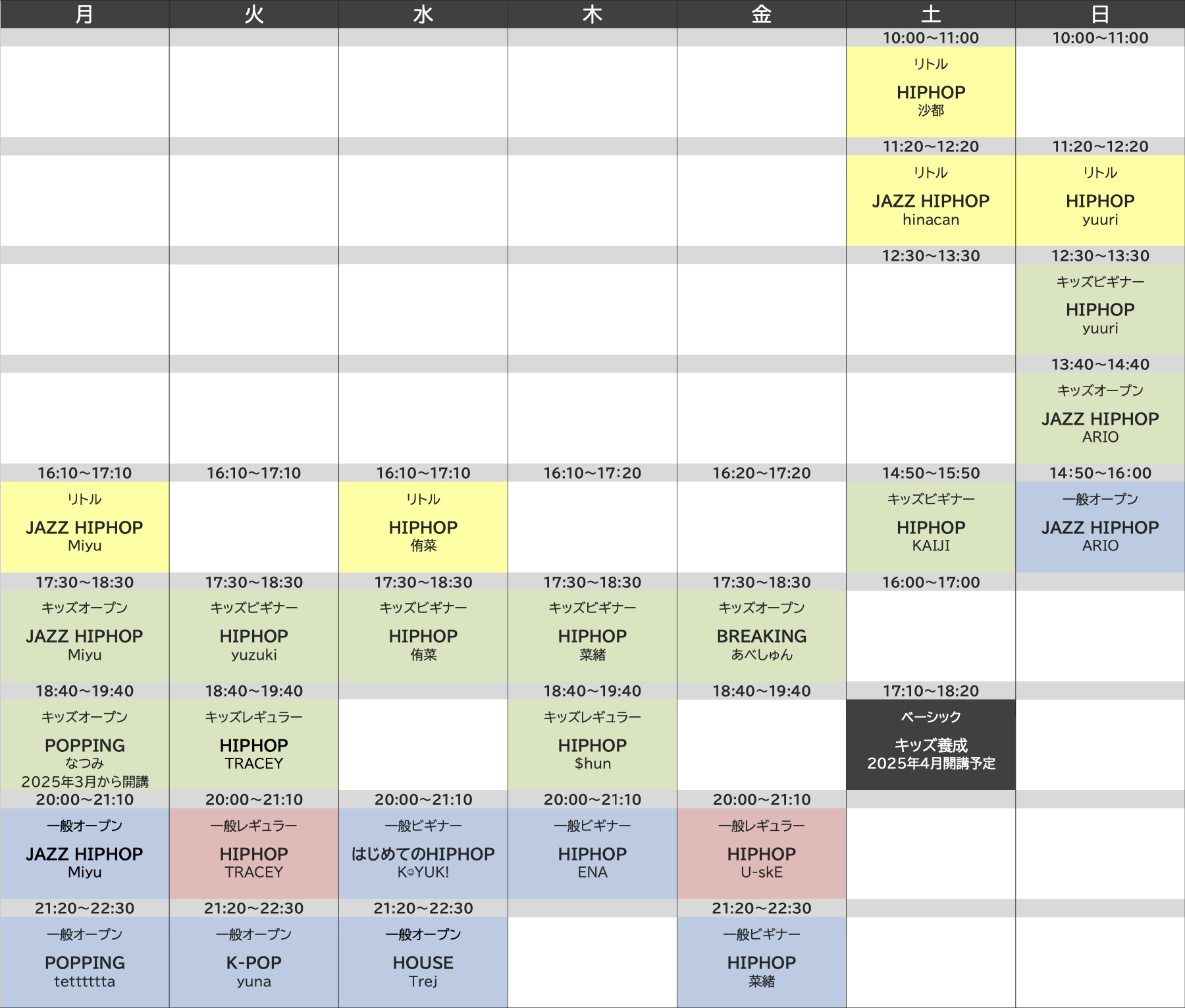 レッスンスケジュール